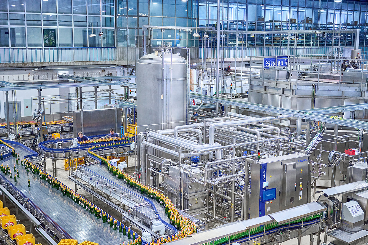 But with every new installation, the brewery faces the same daunting challenge: Because many of its buildings are decades old, space constraints and historic preservation rules make it impossible to expand any of the areas. And so, for example, the bottling hall is located in a three-story building – where every square meter is cleverly utilized: Four lines run in parallel, 24 hours a day on five to six days of the week, depending on the season. And all of those lines were supplied by Krones.