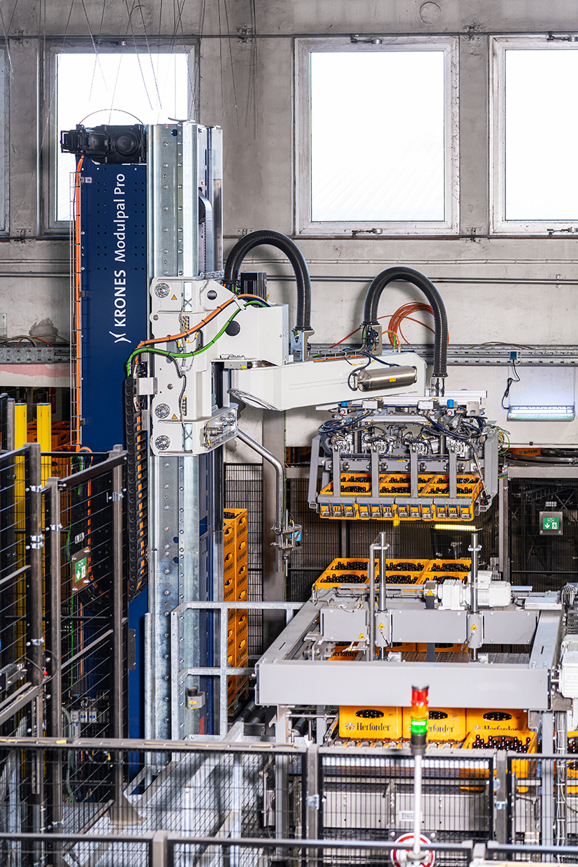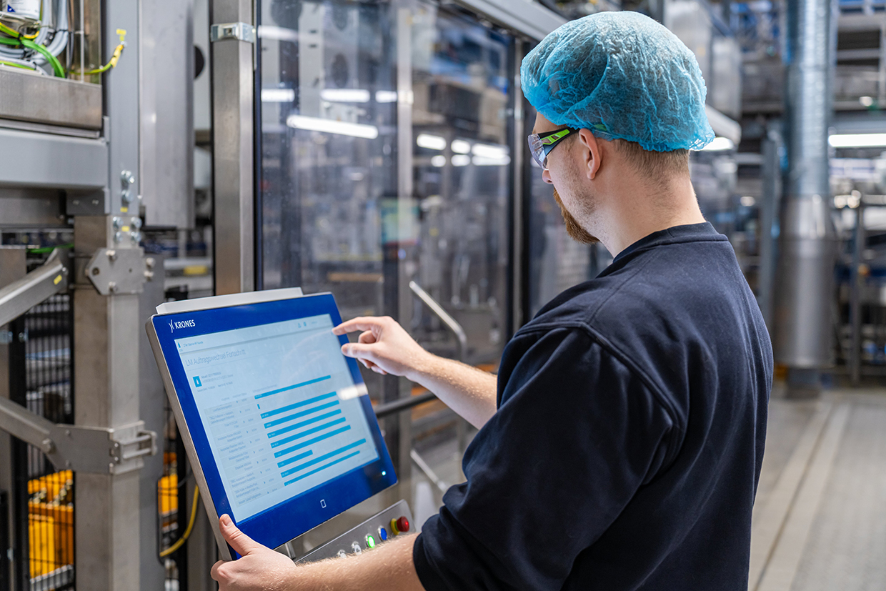 While there were hardly any digital features in the old bottling line, the new one now relies on smart control and real-time data. That has been a really big change for the team. But Henning Vormbrock is full of praise: “It’s great to see how they’ve all got on board.” The staff are supported by two digital solutions from Krones that make work easier for the planning team, in particular. One example of the digital upgrade is bottling schedule planning, which used to be quite complicated and was done as follows: Based on recent sales figures, one of the forepersons drew up the production plan and decided how many empties had to be fed into the line, and when. That required a lot of experience and that person’s permanent presence. Today this task is handled by the Line Management System, a software that records machine performance in real time: What are outputs running at? Is it necessary to supply the line with more empties? The type and number of empties needed in the line are shown on display boards, so the forklift truck drivers know what empties, and how many of each, they have to bring into the line. “Of course, that still requires some coordination, especially towards the end of an order, but the main calculation work is done by Line Management,” explains Henning Vormbrock.